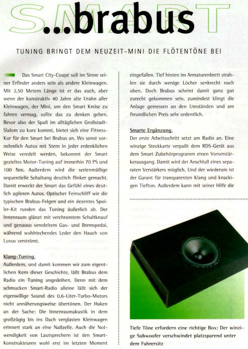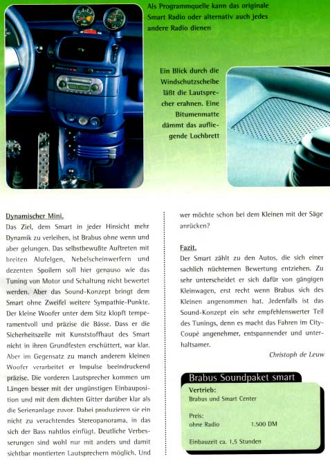 Brabus-Soundpaket-Test in car audio & navigation 3/99 - alle Rechte liegen beim Herausgeber: