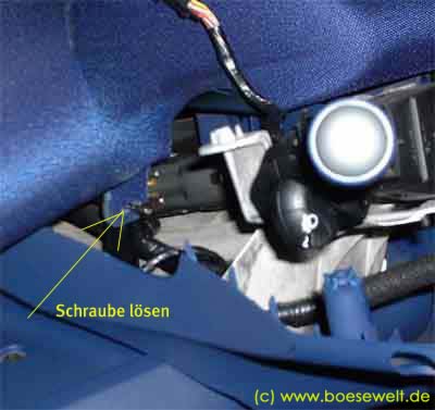 Jetzt wird die Lenksäulenverkleidung demontiert (dafür braucht man einen Torx 10 mit 80mm Schaftlänge), ausserdem die drei Schrauben der Mittelkonsole an den Seiten (unterhalb des Armaturenbretts) und oberhalb des Innenbeleuchtungsschalters